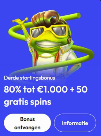 Maak je weekend nog leuker met tot 50 Free Spins bij een storting van minstens €50. Deze promotie is geldig op geselecteerde slots en heeft een inzetvereiste van 30x.